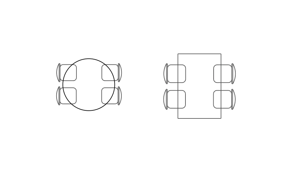 ArcSite's dining table CAD block is available in round and rectangular variants. The tool is fully customizable and can be edited according to your plan requirements.