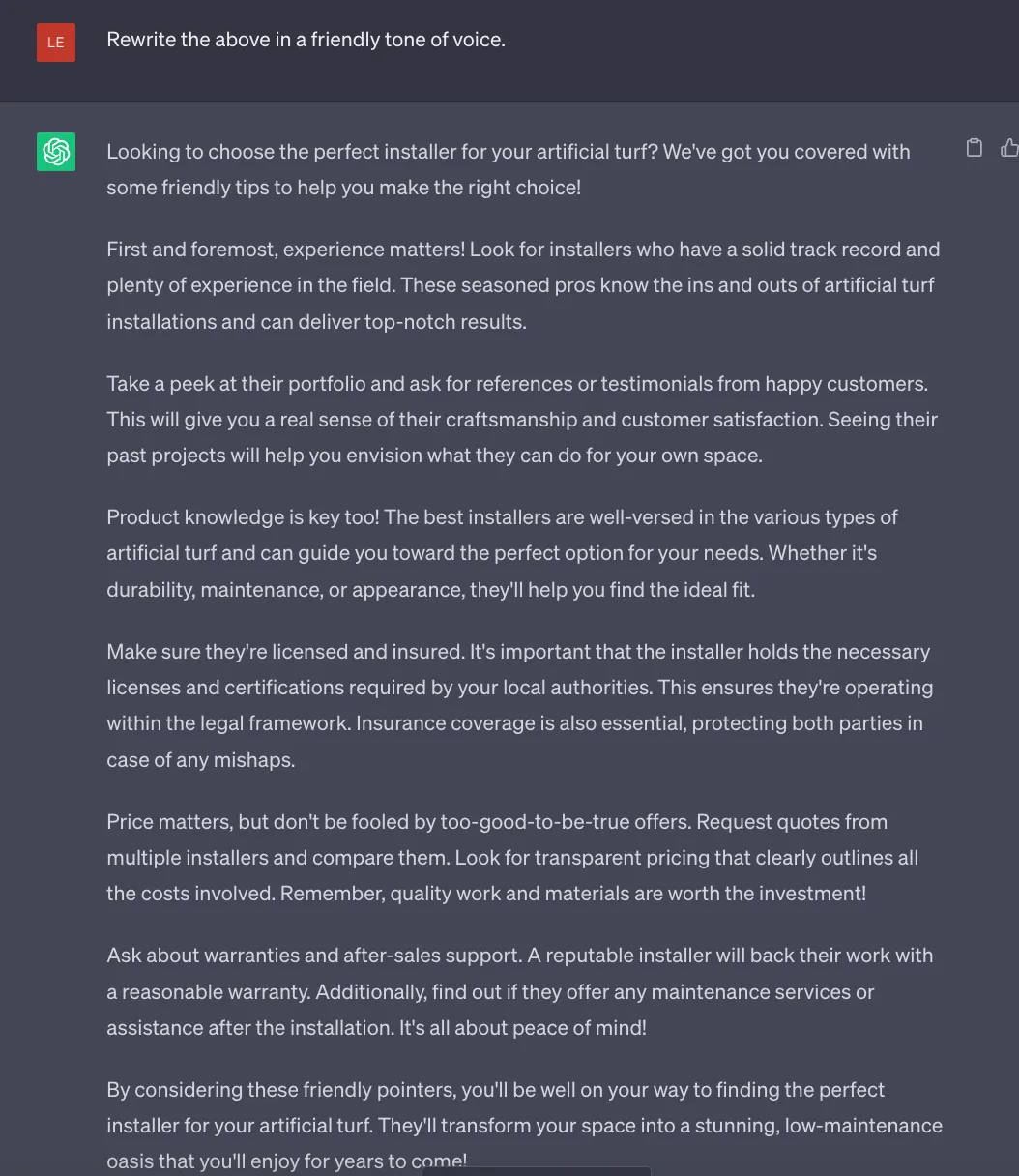 All we did was ask ChatGPT to rewrite the post in a friendly tone of voice. See the difference? It’s easy to fine tune your content with AI tools.