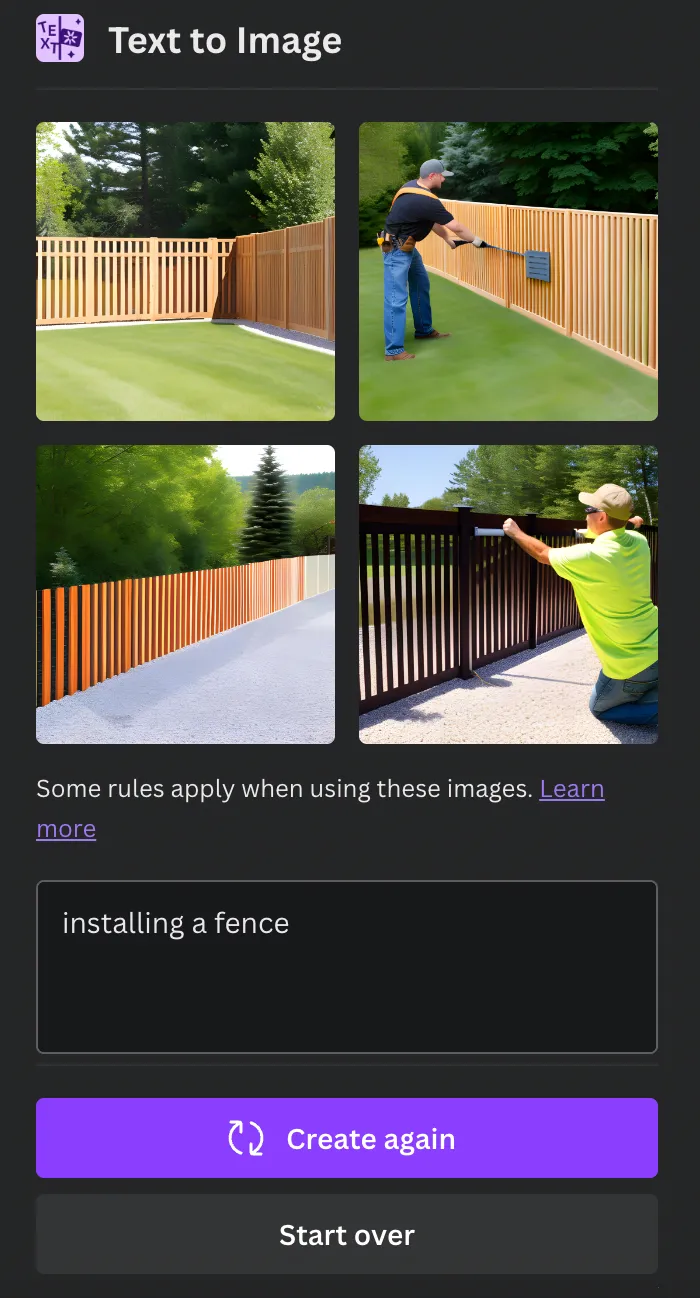 AI image generators are another way you can use this technology. In many ways, this is where AI shines. While it’s fun to tell them to make a picture of a unicorn riding a unicycle, you can also have it create art images like “installing a fence in Louisiana.”