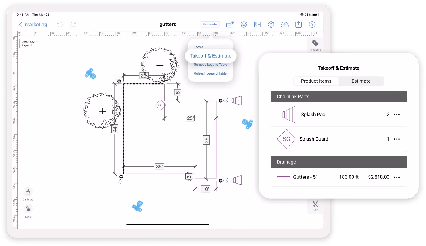 ArcSite automatically calculates total footage from your drawing, so you can apply your rate instantly and generate a quote in minutes.