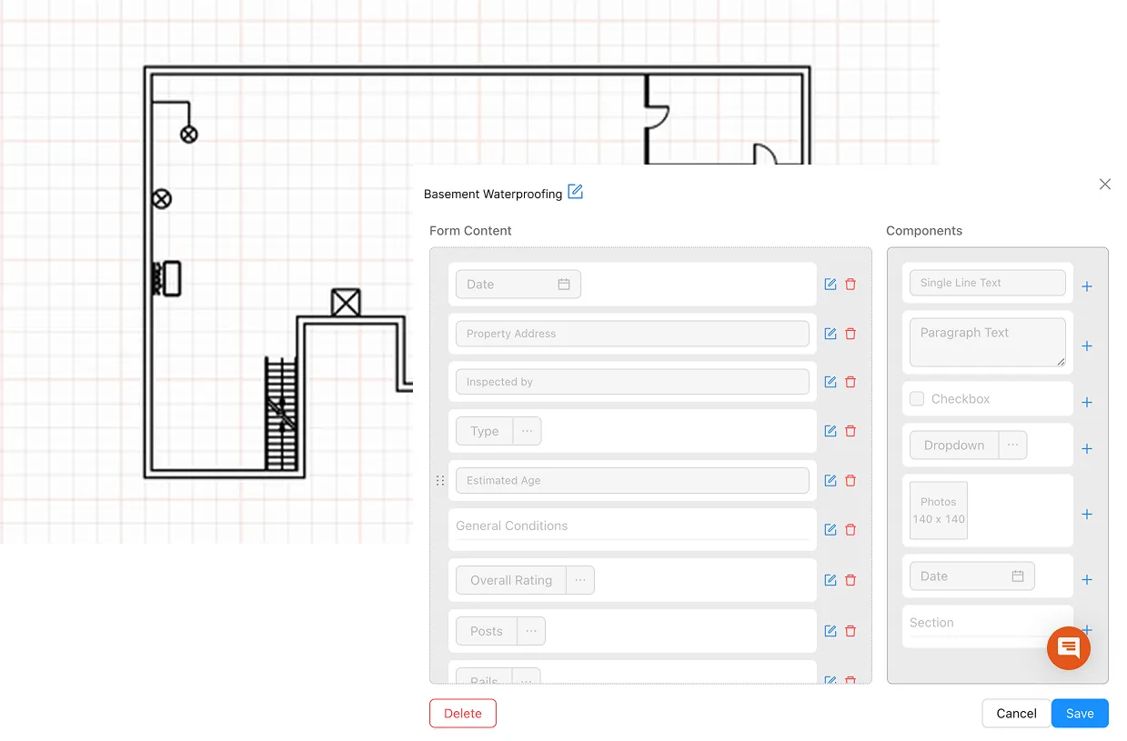 Quickly Sketch Rooms with Basement Waterproofing Inspection Software