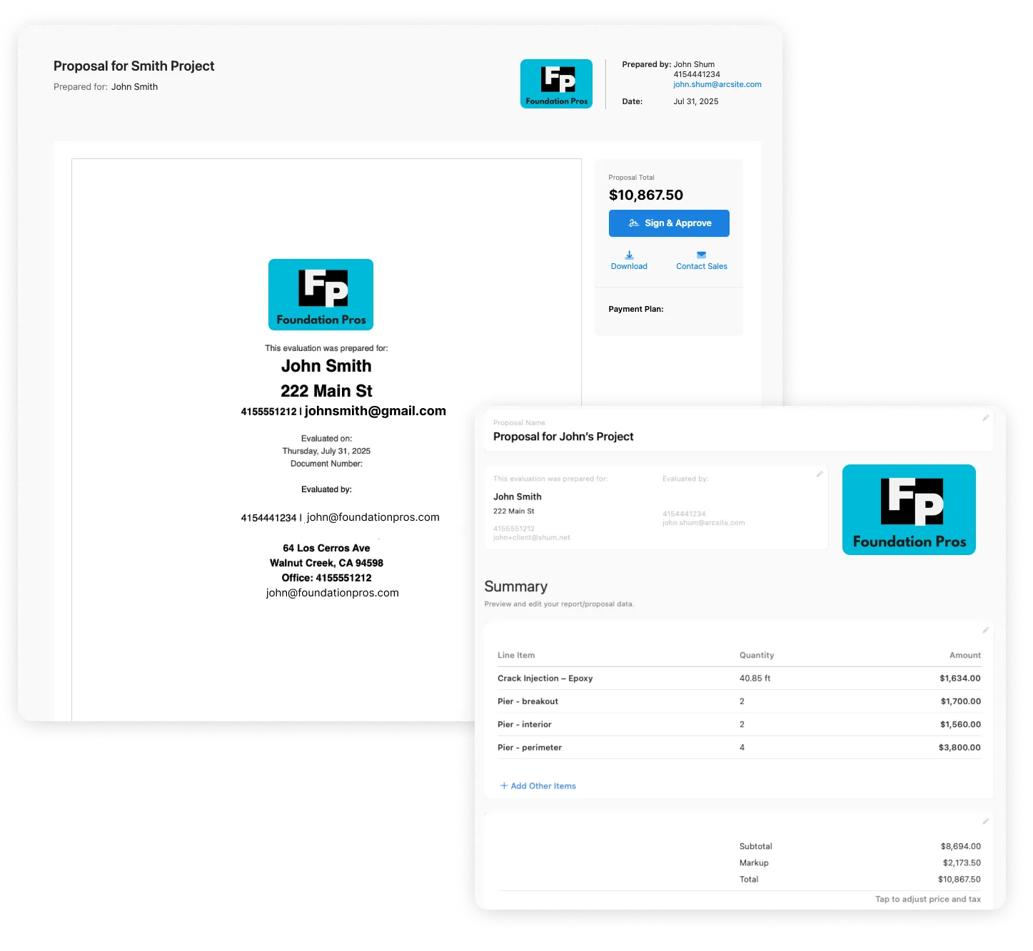 ArcSite’s concrete foundation estimating software streamlines the way you plan, calculate, and propose foundation projects. Effortlessly turn site measurements into precise estimates and professional proposals—eliminating manual pencil and paper calculations, allowing you to focus on delivering quality.