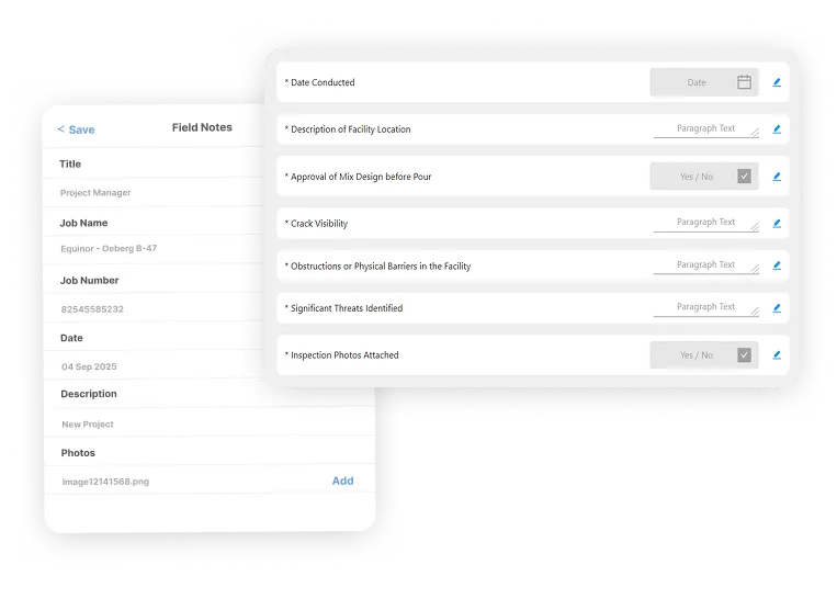 Simplify reporting and boost accuracy with automated reporting tools. Save valuable time inspecting structural integrities, pre-pour formwork, alignment, and surface qualities with ArcSite's concrete inspection software. Standardize your project implementation process and keep your team aligned with reliable documentation.