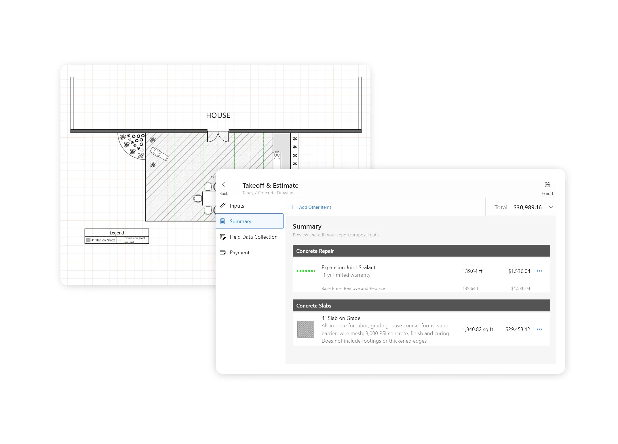 Create instant proposals and estimates with ArcSite’s concrete takeoff software, designed specifically to simplify your business needs. Leave the complicated work to us. With automated takeoffs, you can avoid manual calculations of materials needed for a job.
