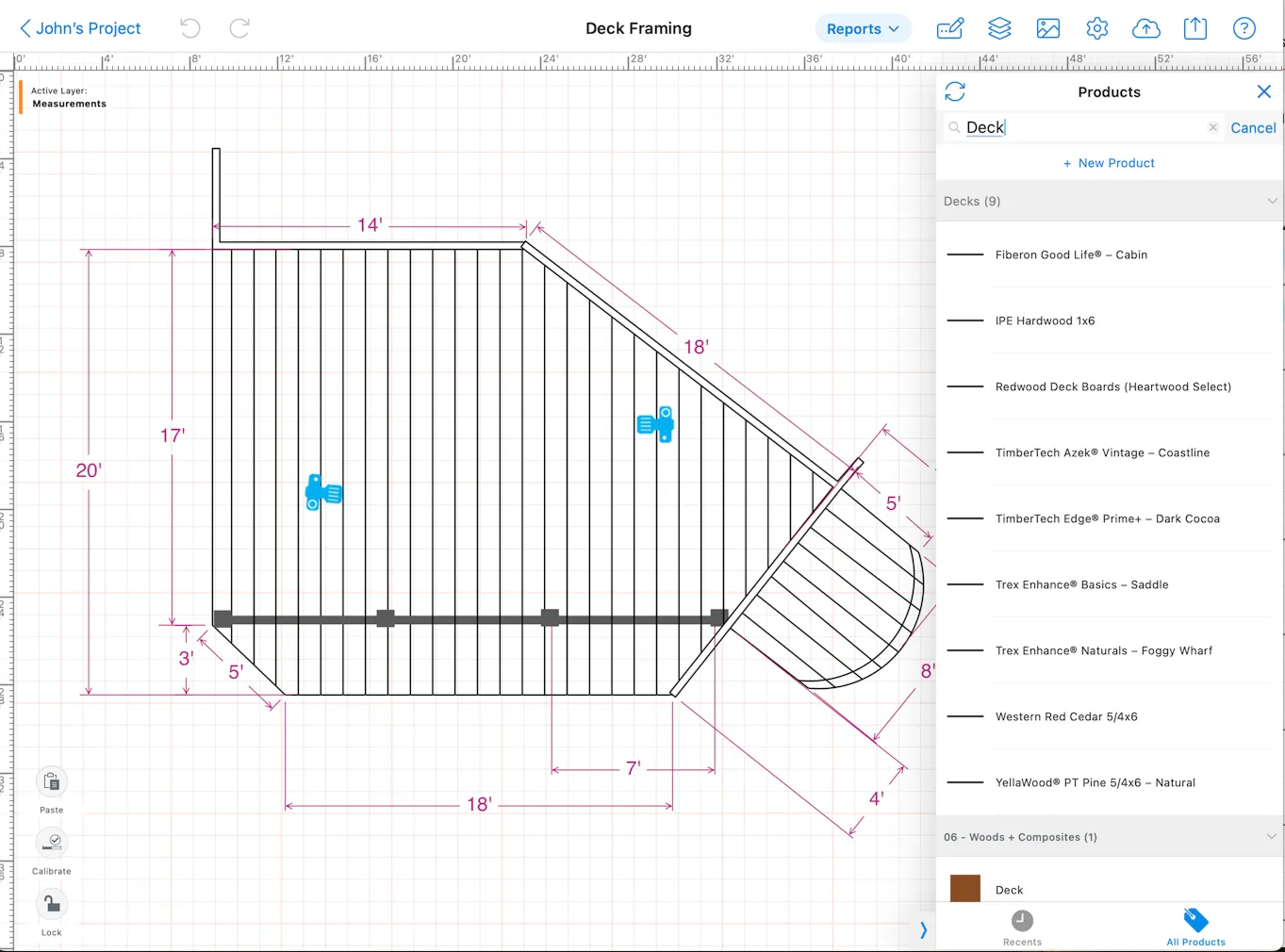 Upload and manage your deck materials and products in ArcSite. Use your real boards, fasteners, and finishes for more accurate estimates and smoother project planning—no more generic placeholders.