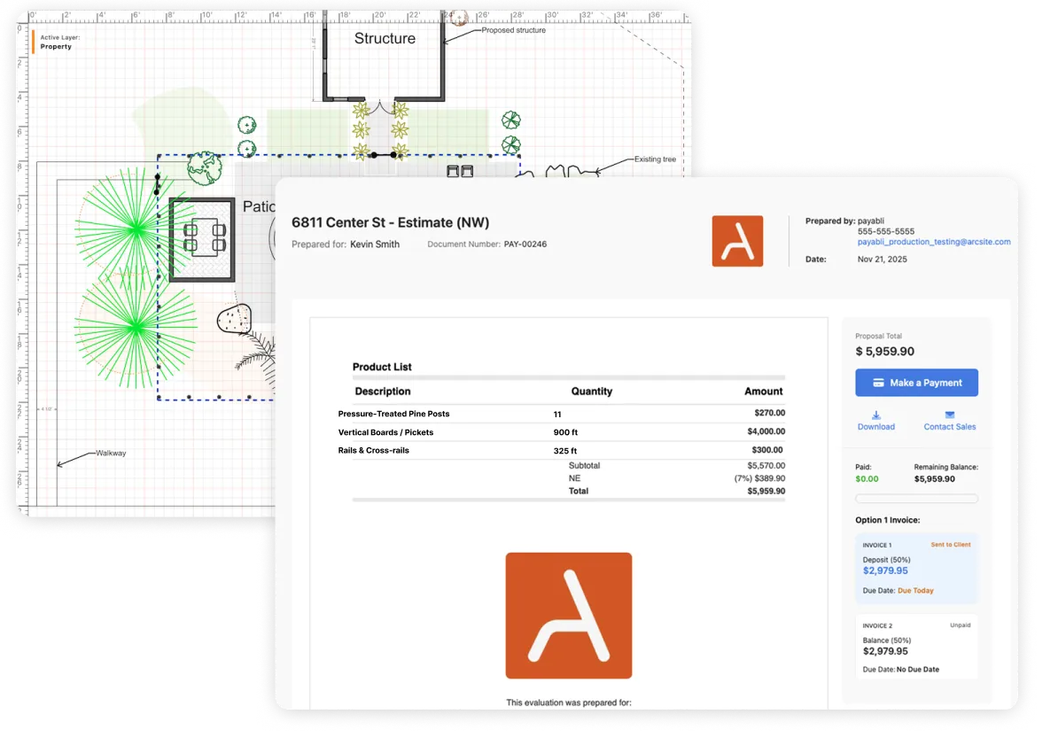 ArcSite automatically turns your on-site drawings and takeoffs into precise, itemized invoices. Every post, rail, picket, and gate pulled from your materials library is included—no manual number crunching required. This reduces errors, saves administrative time, and ensures the invoice perfectly matches the work you scoped.