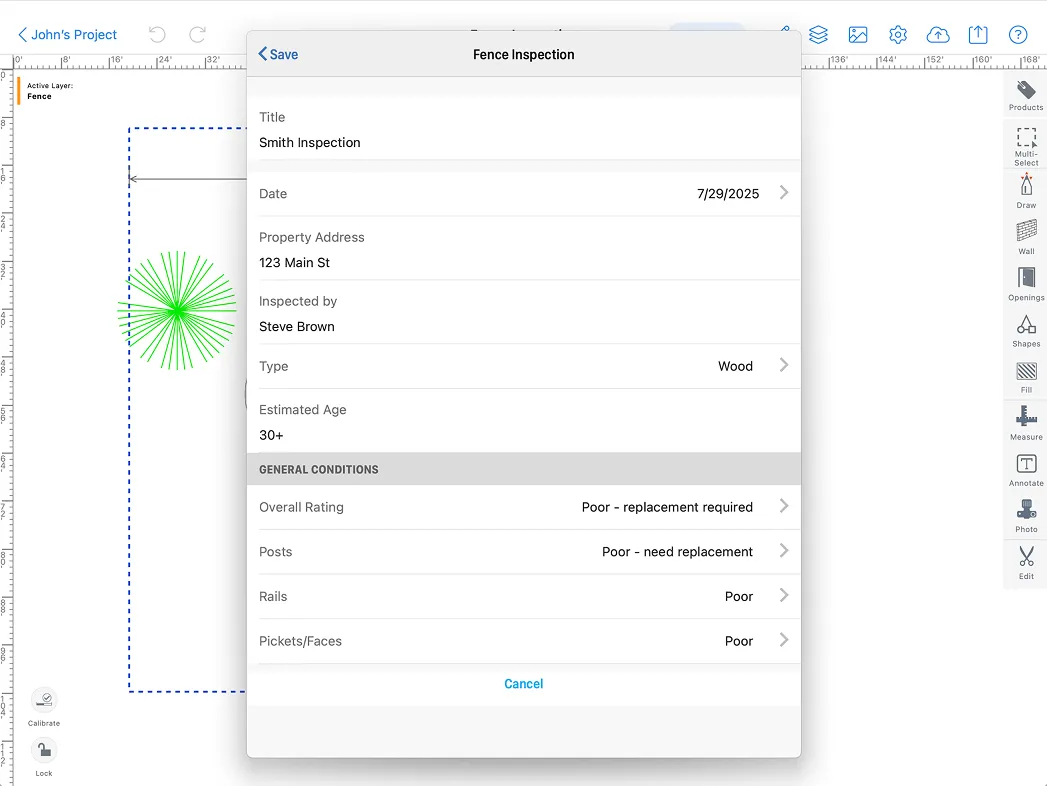Easily conduct detailed inspections, attach annotated reports, photos, and notes directly to plans, streamlining fence assessments for improved project outcomes.
