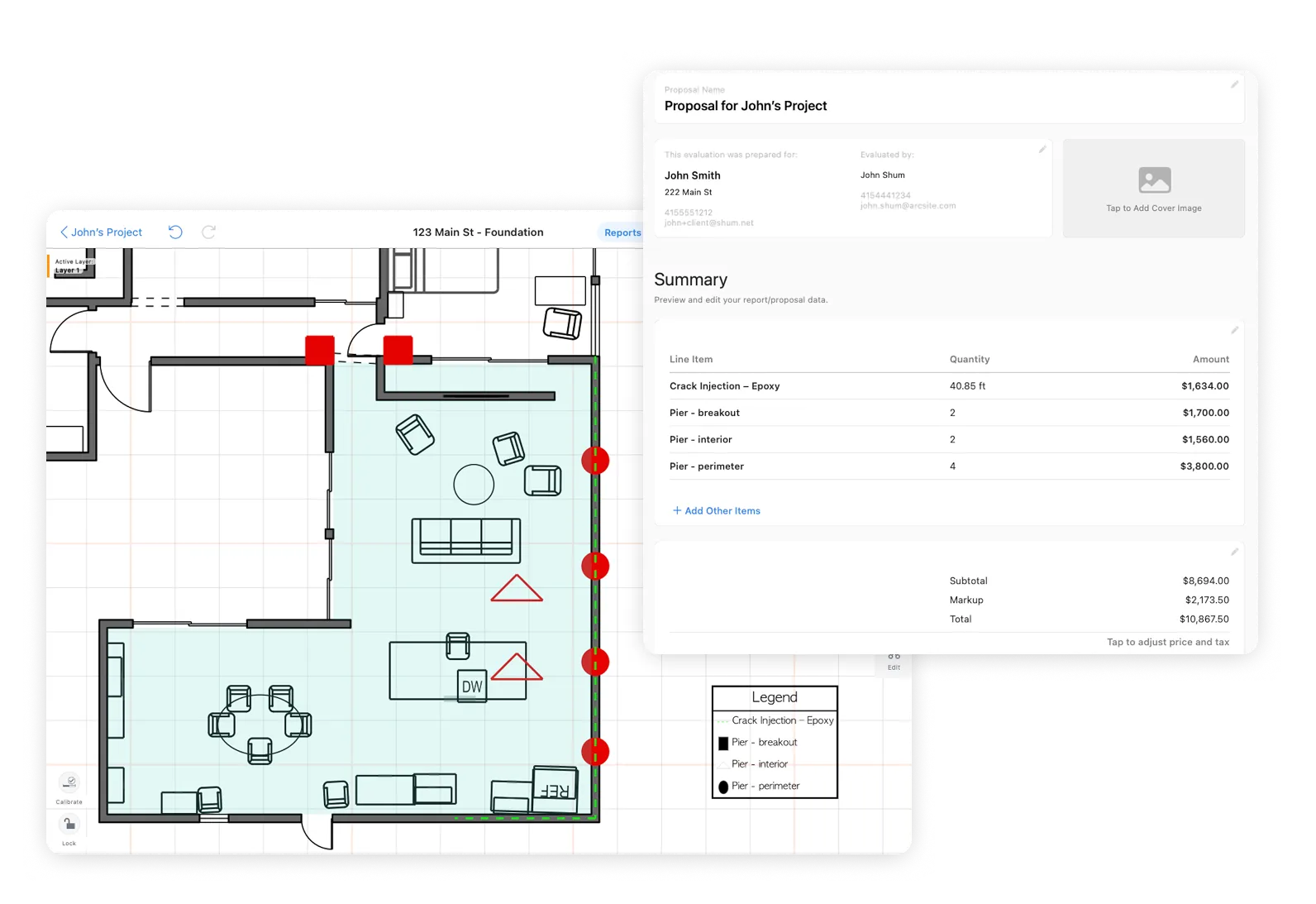 Plan simple footings or complex, multi-structure foundations—without limitations. ArcSite’s infinite canvas supports every phase, ensuring accuracy and scalability as your foundation repair project grows to other areas of the home – or estate.
