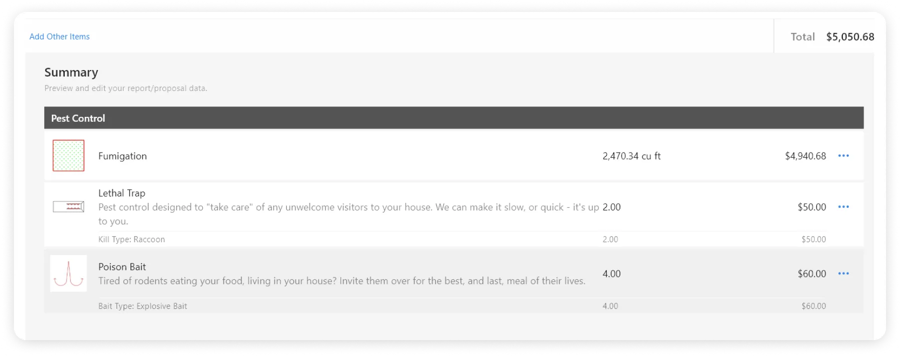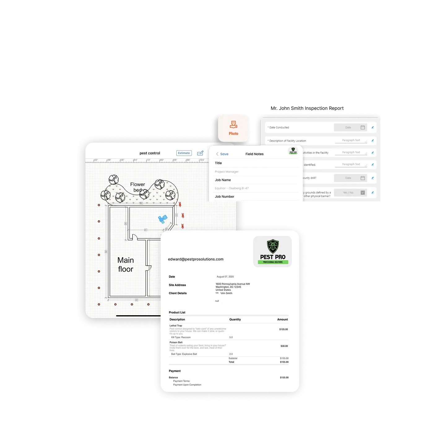 ArcSite's pest control business management software helps business operate smarter and efficiently. Conduct detailed site inspections, map infestation areas in the site drawing, offer custom treatment pricing and solutions, and deliver brand-integrated proposals, all under the same roof.