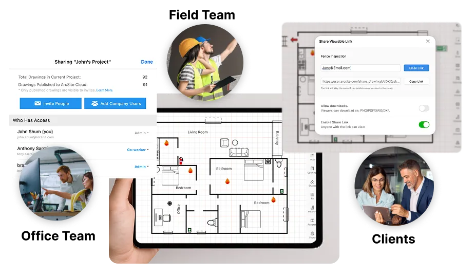 Instead of separate sketches or flat photos, ArcSite lets you draw scaled site plans or floor layouts and annotate directly on them. This helps: