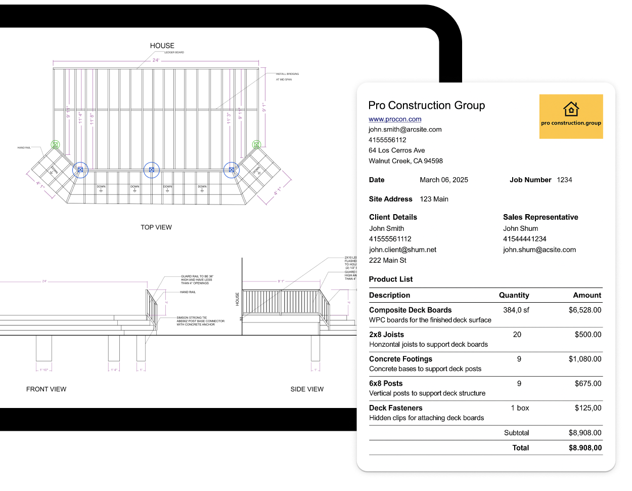 “We used to spend 10-30 minutes pricing each deck. Now, ArcSite prices in real-time the second the drawing's done.”